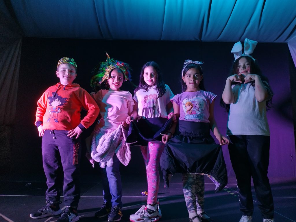 Los talleres de teatro se realizan en el Crea Cantarrana y el grupo está conformado por aproximadamente 15 estudiantes entre 9 y 12 años, la mayoría del Colegio San José de Usme, institución aledaña al Crea Cantarrana. Es la primera vez que tienen un proceso de formación en teatro, desde el inicio de clases y se caracterizan por ser creativos, expresivos, comprometidos, se interesan por conocer el universo del teatro y siempre dan su máximo esfuerzo, es un espacio de autoconocimiento, juego y exploración de técnicas teatrales donde los participantes desarrollan habilidades estéticas, expresivas y corporales a partir de la creación.