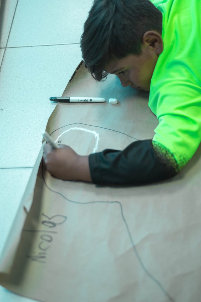 En este taller de creación literaria, los y las niñas, juegan y exploran diferentes técnicas artísticas para representar así sus historias.
